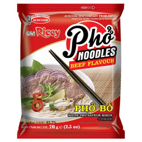 Acecook Oh! Ricey Pho Noodles Beef Flavour 70g
